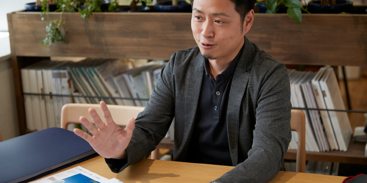 いろんな人の話や想いが聞ける職場なので、会話から得たヒントを設計に活かせるようになりました。エイワハウジングは前職に比べて部署が多く、立場や状況もさまざまな人が働いています。いろんな人の話をききやすくなって視野が広がったと感じます。それに、これまでは自分一人で答えを導き出さなければいけないと思っていましたが、今は営業をはじめ工務や仕入れなどの部門長から意見を聞くことができるのが、とても心強いです。チームプレーで働いているって感じられます。僕も、経験と設計の知識を活かして、周りの役に立てているといいなと思います。