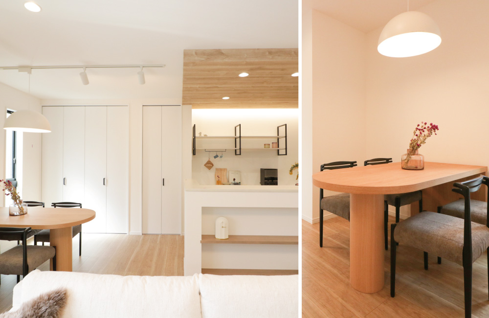ダイニングテーブル&チェアとリビングのフロアライトが