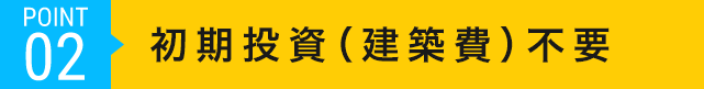 弊社の場合は弊社自身がオーナーとなるため初期投資はもちろん、条件面のすり合わせなどの工数も必要最低限で済みます。「不動産を保有したくない・・」「運転資金に資金を回したい・・」等の複数拠点で事業の展開を考えてる事業者様はお気軽にお問い合わせください。賃料などの条件面だけでもお伝えできればと思います。