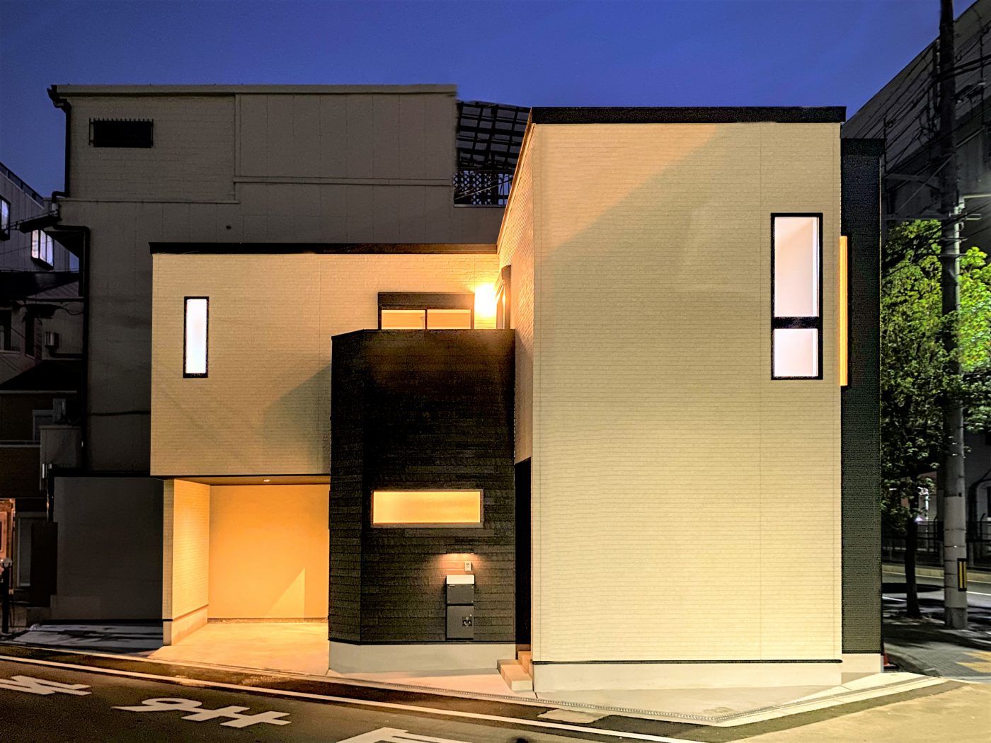 都市の景観に馴染むモノトーンの外観は、それぞれ異なる色柄を組み合わせ、表情に変化を付けたデザインです。インナーガレージは、LDKとつながっているので、室内から目が届き、車を風雨から守る以外にも、子どもが遊んでいても安心です。また雨の日や、たくさんのお買い物をした時など、車から直接LDKに運べ、スムーズに使えます。