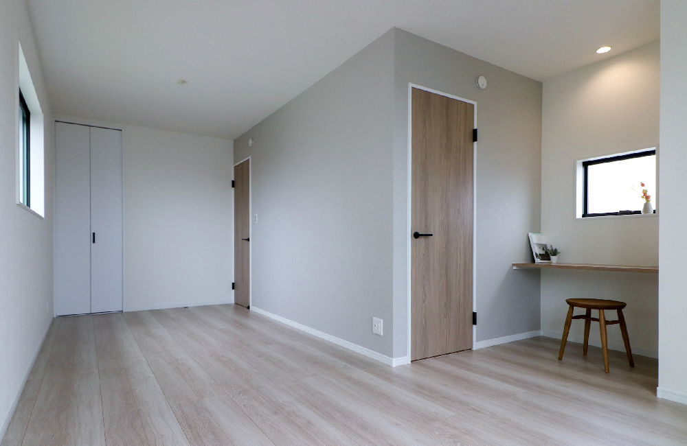 3Fにはお子様の成長にあわせて、2部屋に分けれる11.6帖の部屋を設けました。子どもが小さい頃は、ご家族みんなで安心して遊ベて、一緒に寝られるファミリースペースとして使って。子どもたちが成長し、自分の部屋が必要になった時に、部屋を2つに分けて使えるよう、壁の下地や部屋ごとのドアと収納を設けました。