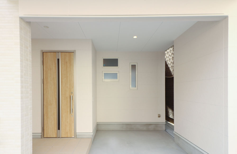 天井があるので雨の日でも傘をささずに玄関と行き来できる、小さな子どもを抱っこしながらの、荷物の出し入れもラクラク。大切な車を雨や日光から守ってくれ、車の劣化防止にも◎また屋外コンセントと水栓を設けているので、高圧洗浄機を使っての洗車や、外回りの清掃をしたり、飼い犬の散歩帰りに足を洗ったりもできますね。車がないときには、趣味の自転車をいじったり、子どものあそび場にしたり、家族で活用できるスペースです。