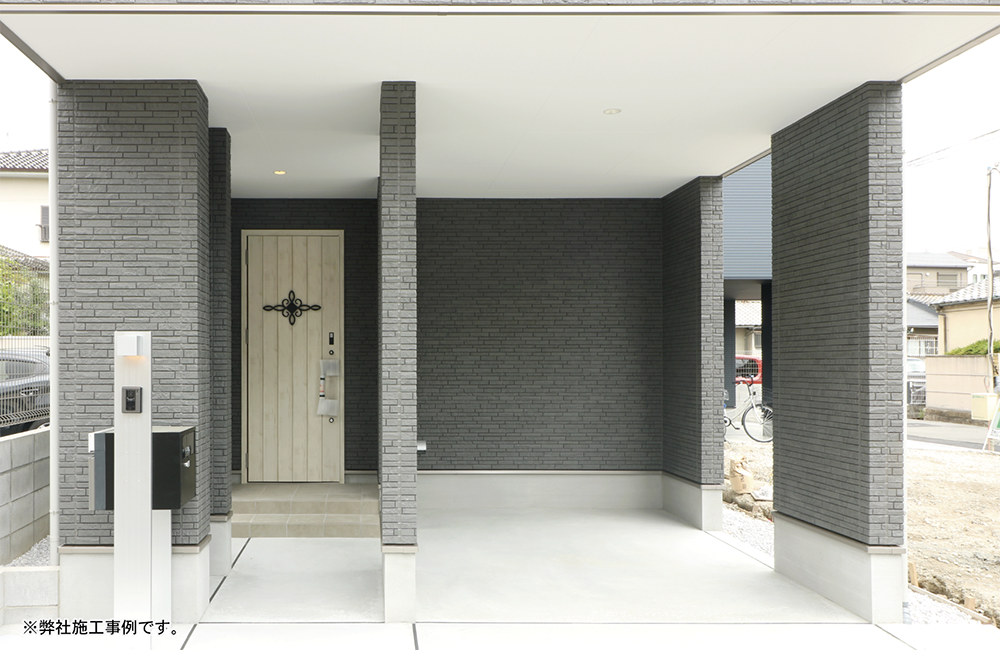 車の出し入れがラクになるよう、スペースを広くとった横幅約3.1mの幅広ガレージ。雨の強い日でも、大切な車や自転車を安心して駐車でき、玄関先の軒下にアウトドア用品を、雨にさらさず保管できます。また防水コンセントや水栓を設けているので、高圧洗浄機を使っての洗車や、玄関廻りの清掃もラクチンです。
