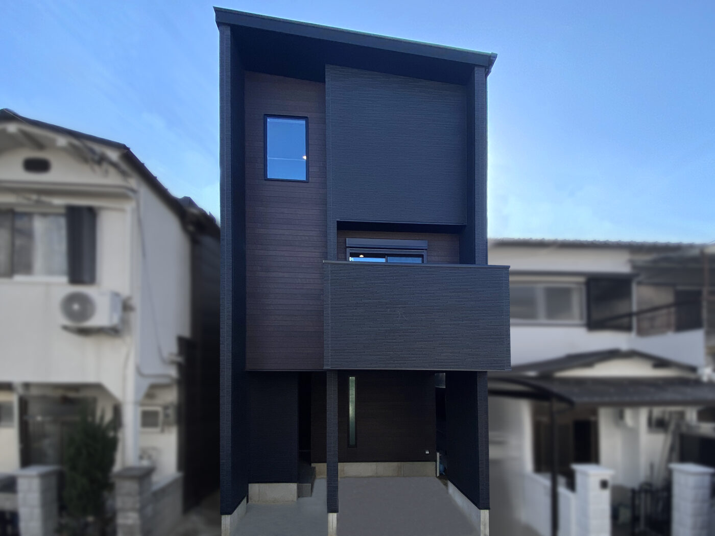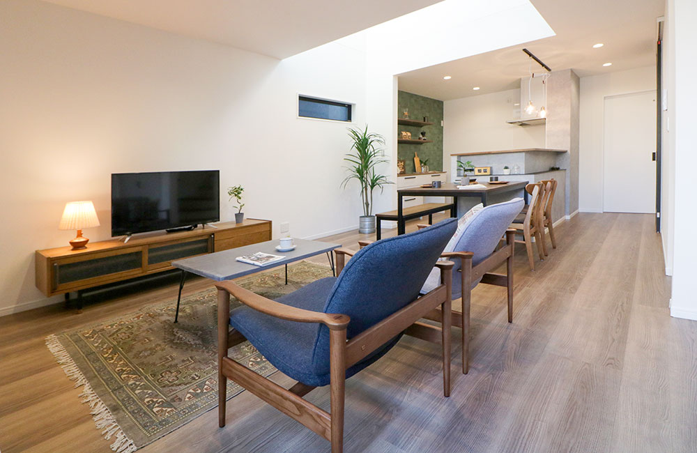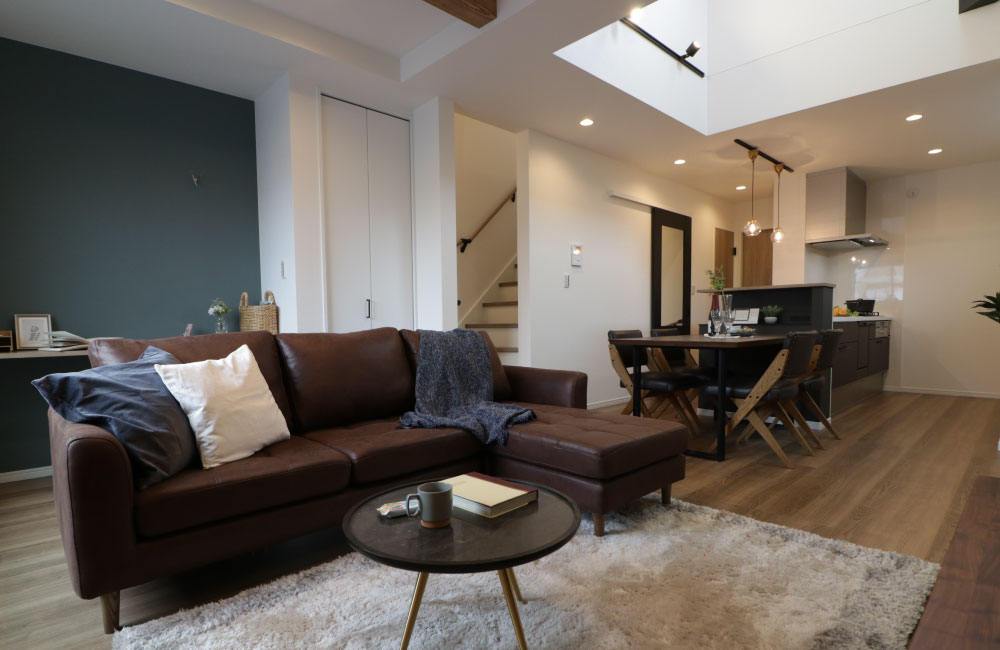 アクティブなご家族に良く似合う、『自分達らしく子育てを楽しめる家』が完成しました。ブラック×木目の渋い外観、内装は石目やモルタルなどのダークな色目にアイアンを合わせ、甘さを抑えたかっこいいテイストに。家族が自然に繋がれるリビングや、コミュニケーションを取りながら家事もこなせるキッチンなど、「家事」と「育児」を仕事と両立しながら、生活しやすい工夫を凝らしています。近くにある花園公園で、子どもたちが自転車で遊んで帰ってきても、「汚れものは洗濯室で乾燥まで完結」「靴を脱ぎ散らかしても、お客様用とご家族用で玄関が分かれているので大丈夫」「ゆとりある屋根付きの自転車置場」など、心に余裕をもって過ごせ、自分達らしい世界観で子育ても楽しめる。そんな住まいにしています。