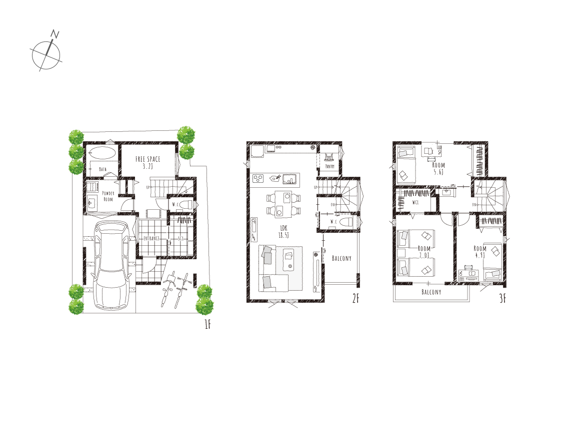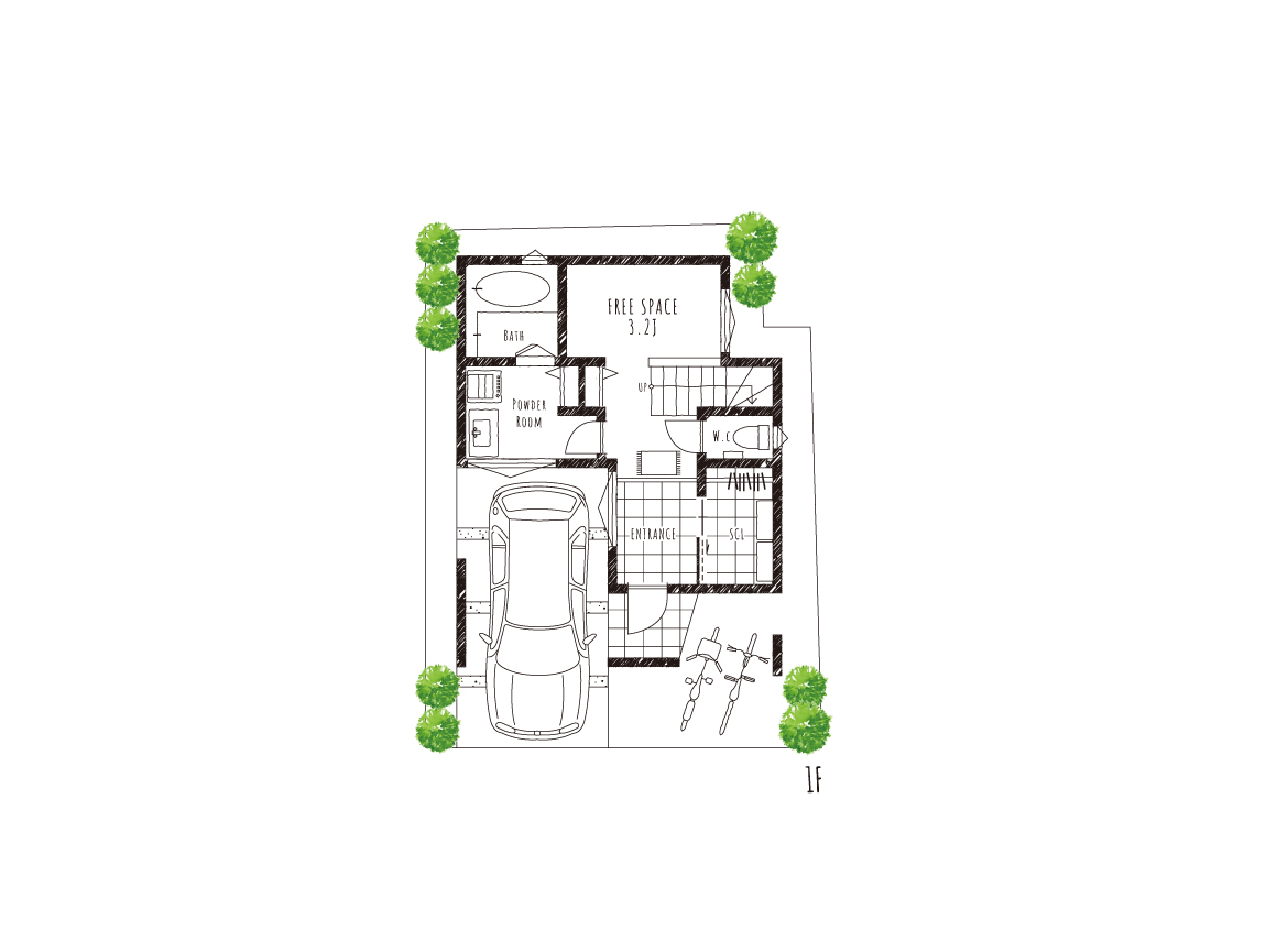 白×グレーのさわやかな配色に、片屋根にブラックの窓枠の四角がアクセントになった、さわやかでスタイリッシュな外観に仕上げました。