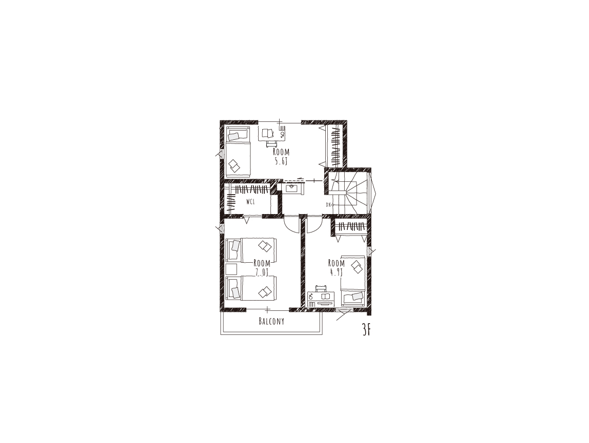 3階の踊り場に、2つめのシンプルな造作洗面台を設けました。手を洗ったり、加湿器に水を入れたり、お掃除の時もわざわざ階下に下りる必要がありません。寝室や子ども部屋の近くにあるので、朝の支度で洗面台が取り合いになることもなくなり、お化粧や髪を整えたり、身支度もスムーズに。壁面に造作の棚を設置しているので、よく使う小物も収納でき、スッキリ片付きます。ブラケットライトで光の演出もたのしめる、おしゃれなコーナーに仕上げました。