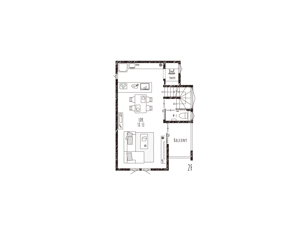 天井や壁に間接照明をふんだんに取り入れた、ホテルライクな家が完成しました。まわりをふわっと「コーブ照明」が照らす上質感ある居心地良いリビング。キッチンやフリースペース、トイレにも「間接照明」や「ブラケットライト」を組み込んだ演出は、訪れた人が驚くような空間です。あえて壁を作らずオープンにしたキッチンは、照明の演出も家族の気配もさえぎることなく過ごすことができます。ちょっと作業をしたい時や、見せたくないものがある時は、キッチン横の家事室にこもったり、そこに隠せてしまえます。1階には「ランドリースペース」や「トレーニングルーム」のような、ちょっと特別なスペースが必要な方にも対応できる「フリースペース」もご用意。はやく家に帰りたくなるような、特別感のあるお家です。