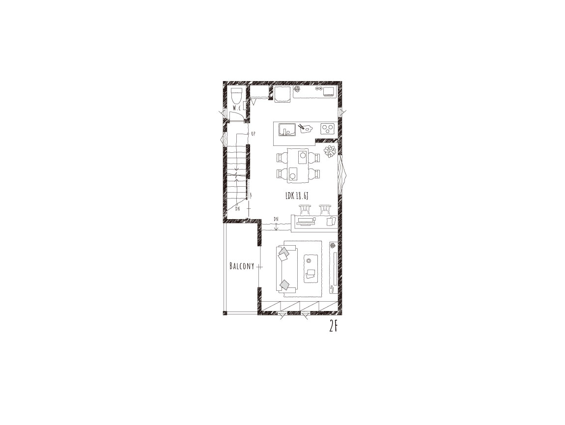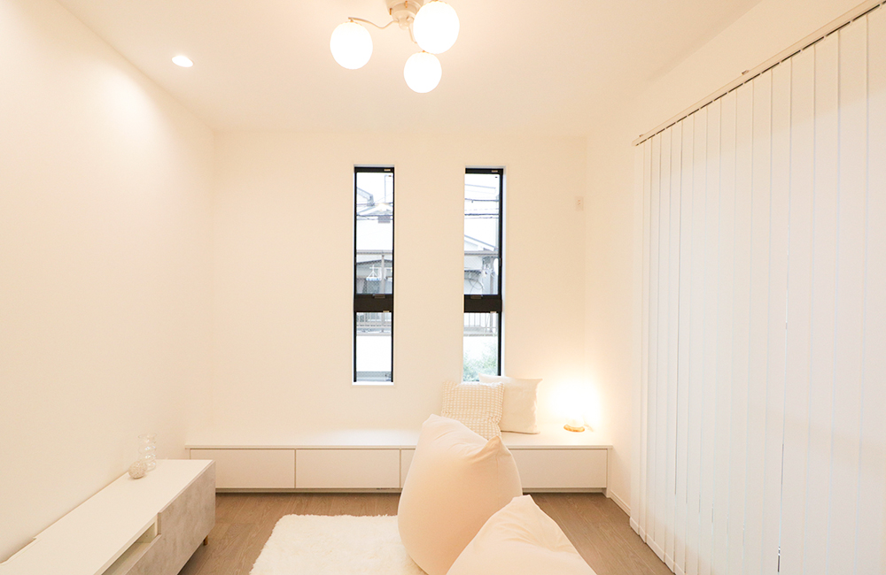 動きのある開放的な空間だったので、突板のフローリングや、キッチンのタイルなど、細部にこだわり、それらを引き立たせる様、内装はシンプルにまとめました。どのスタイルの家具を置いても空間に馴染むような、住む人に寄り添うお家です。ぜひ、お気に入りの家具を置いて、あなた好みの素敵な空間にしてください。(コーディネート担当:塩田)