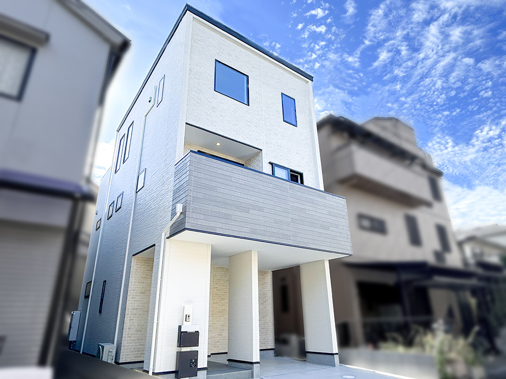 光が降りそそぐ大きな吹抜けを中心に、家族がつながる家が完成しました。吹抜けを通して、LDKと3階ホールがゆるやかにつながり、家族の気配が感じられる、明るく開放的なリビング。動線やライフステージの変化にこだわった間取りは、「2WAY玄関」や「将来間仕切れるお部屋」「キッチンから出入りできるバルコニー」など、家事や生活がしやすいつくりにしています。また、シューズクローゼットや寝室のクローゼットの入口をR型にしたり、キッチンにはヴィンテージ調のタイルを施して、かわいらしく柔らかく。くすみ系グレージュ×木目×ベージュで統一した上品でやさしい色づかいの中に、ゴールドを取り入れた照明や素材感あるカーテン類で、かわいらしくも大人っぽい雰囲気を演出しています。
