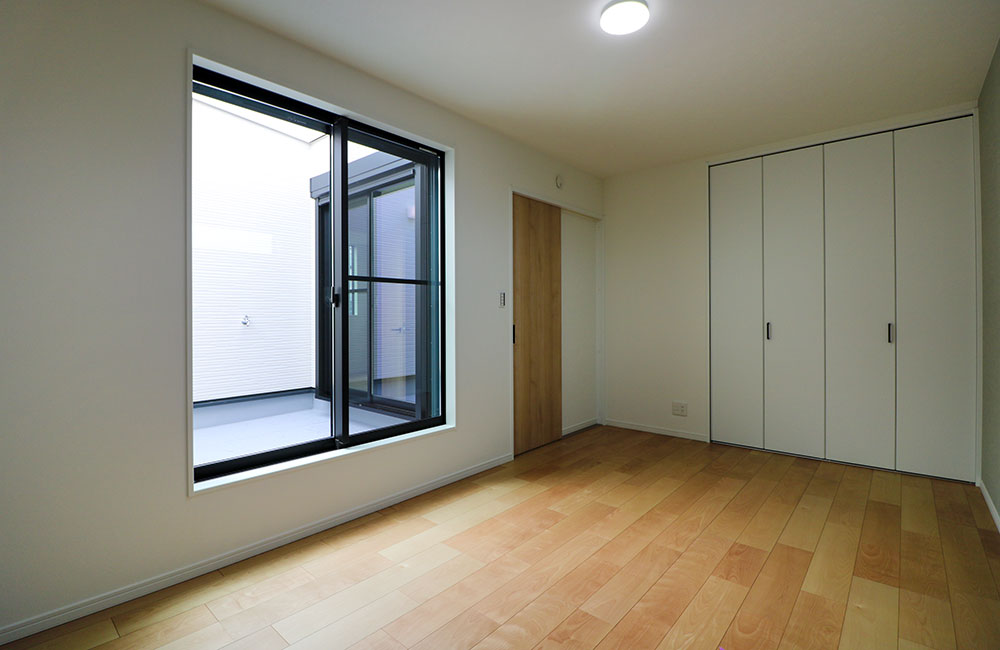 3階のバルコニーに面した7.5帖の広めのお部屋。外から見えないバルコニーなので、人目を気にせず開け放しにでき、さらに開放感を味わえます。主寝室として使えば、夜は夫婦でビールを飲みながらお月見を。ファミリールームとして使えば、窓を開けてバルコニーをプレイルームとして子どもを遊ばせたりもできますね。暮らしながら、色々な楽しみ方をみつけてください。