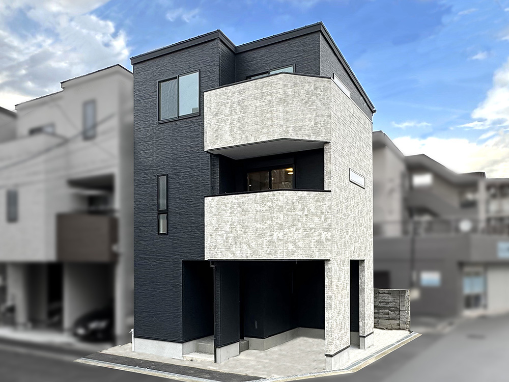 ブラック×グレーの石目調のシックでモダンな外観。落ち着きと高級感を感じさせながらも、石目の素材感でナチュラルな雰囲気に。インナーガレージなので、雨の日の乗り降りや、荷物の積み下ろしで濡れる心配もなくなります。2階バルコニーにも屋根があるので、お天気を気にせず洗濯物を干すことができます。