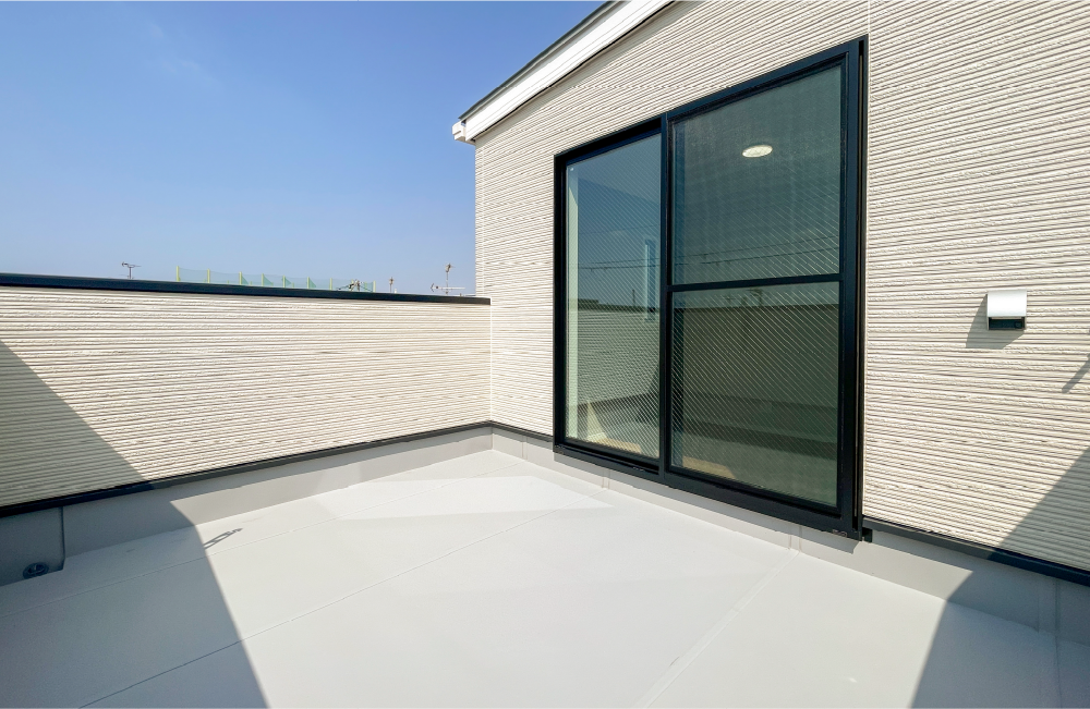 周囲を気にせず過ごせるアウトドアスペースとして、3階に約5.4帖のルーフバルコニーをご用意しました。洗濯物の外干しはもちろん、水栓付きのため、子供のプールや遊び場、BBQなども気軽に楽しめます。また、日当たりが良いので、植物の好きな方はガーデンスペースに、ペットがいるご家族にはペットと楽しむスペースとして◎