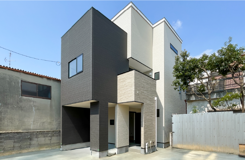 玄関を正面から見えにくい位置に設け、プライバシーに配慮したスタイリッシュな外観。お家に帰ると、玄関前のシンボルツリーが、暖かく出迎えてくれます。また、車種によっては車を2台以上駐車できるので、来客時も安心ですね。