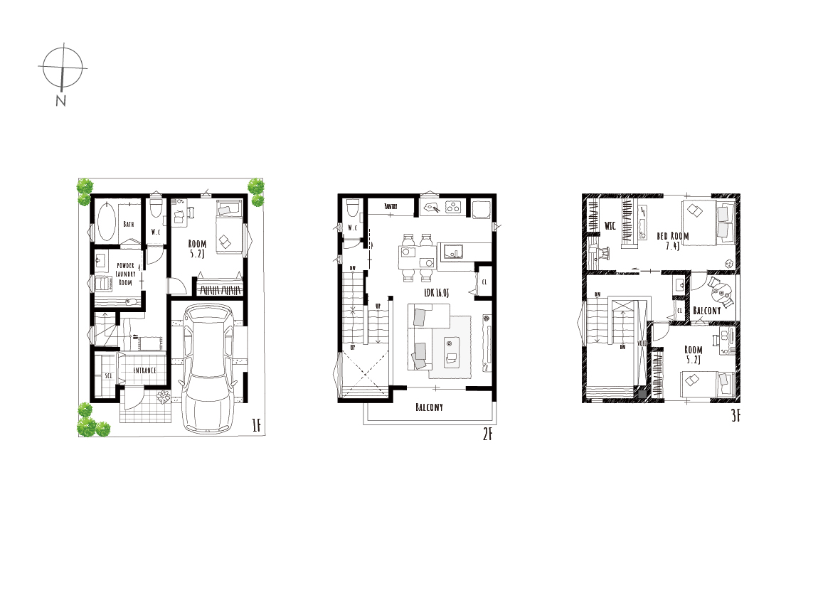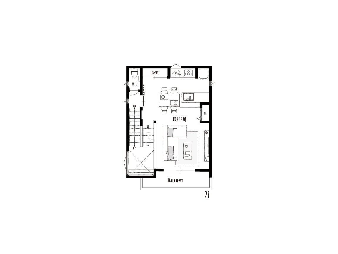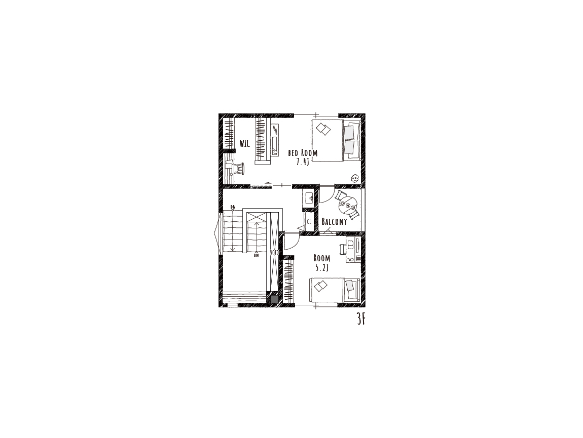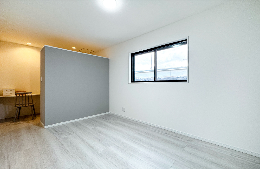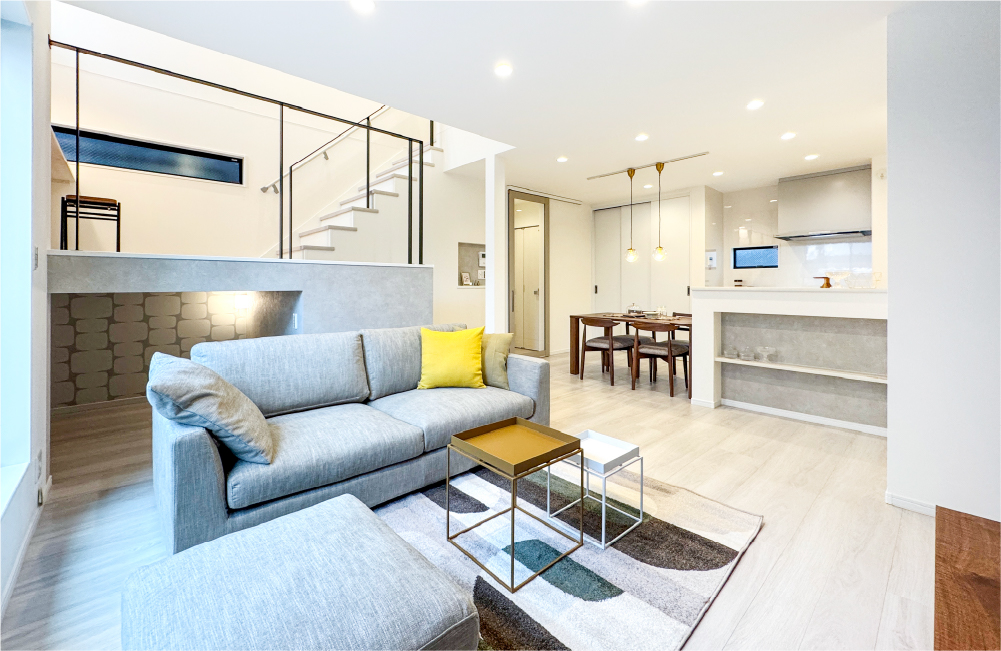 家族が集まる2階のLDKは、白を基調にした明るい空間。そのLDKからプライベートスペースである3階へと、スキップフロアでつながるオープンなつくりのお家です。2階から3階へ向かう途中の踊り場にはカウンターを設け、リビングで過ごす家族の気配を感じながら、子どもたちが集中して勉強できるスタディコーナーに。スキップフロアの下には、約2帖ほどの収納スペースを設け、子どもたちが秘密基地のように楽しめる遊び場としても活用できます。限られた空間の中でスキップフロアを採用することで、プラスアルファの空間を生み出し、住まいに広がりをもたらすと同時に、家族のコミュニケーションを豊かに育む住まいになりました。