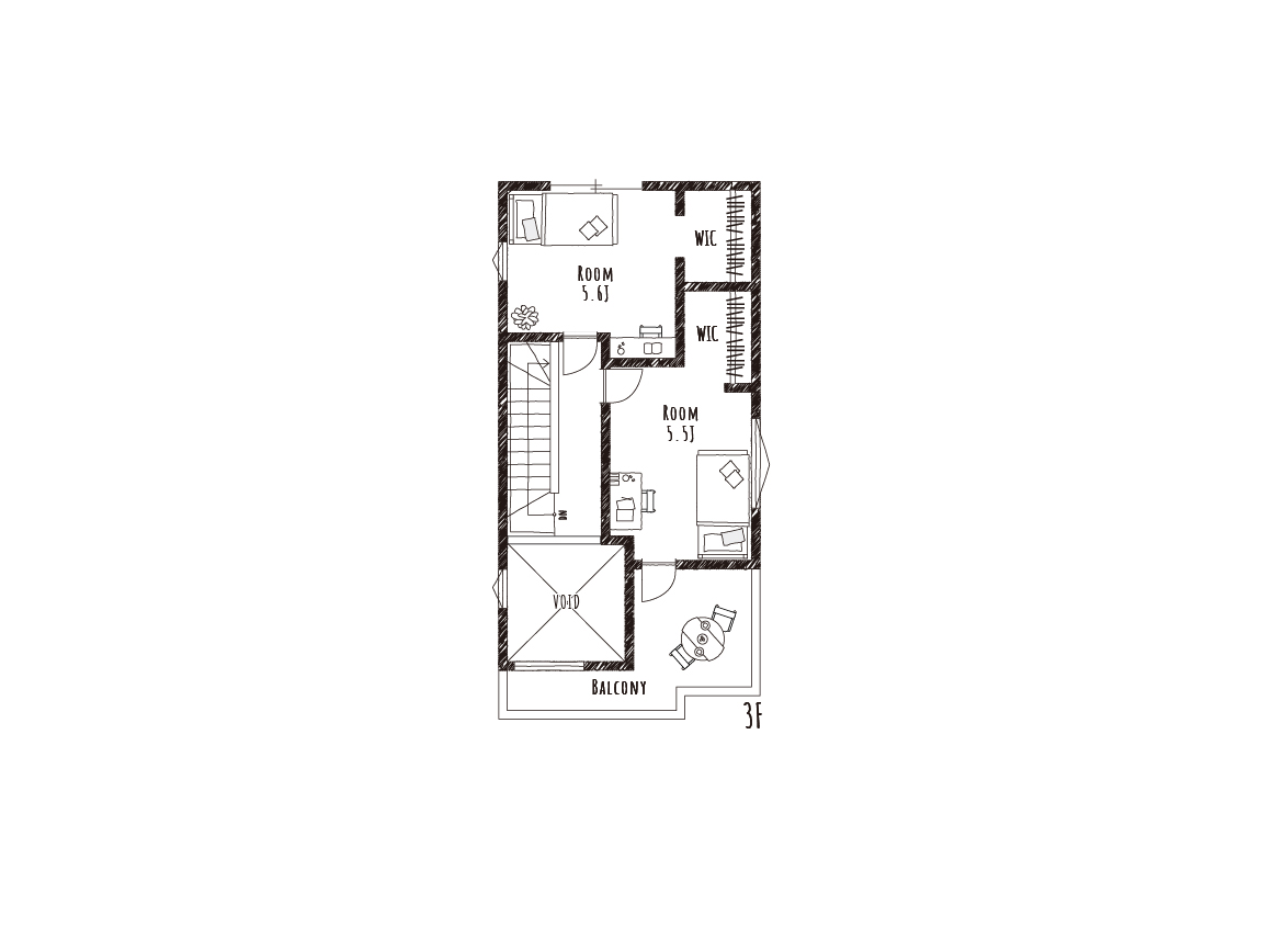 3階の2つの居室には、それぞれウォークインクローゼットを完備。各部屋に大容量の収納を確保することで、オールシーズンの衣類を自室で管理でき、衣替えもスムーズです。大型収納に対応した設計により、居室空間を広々と活用できます。