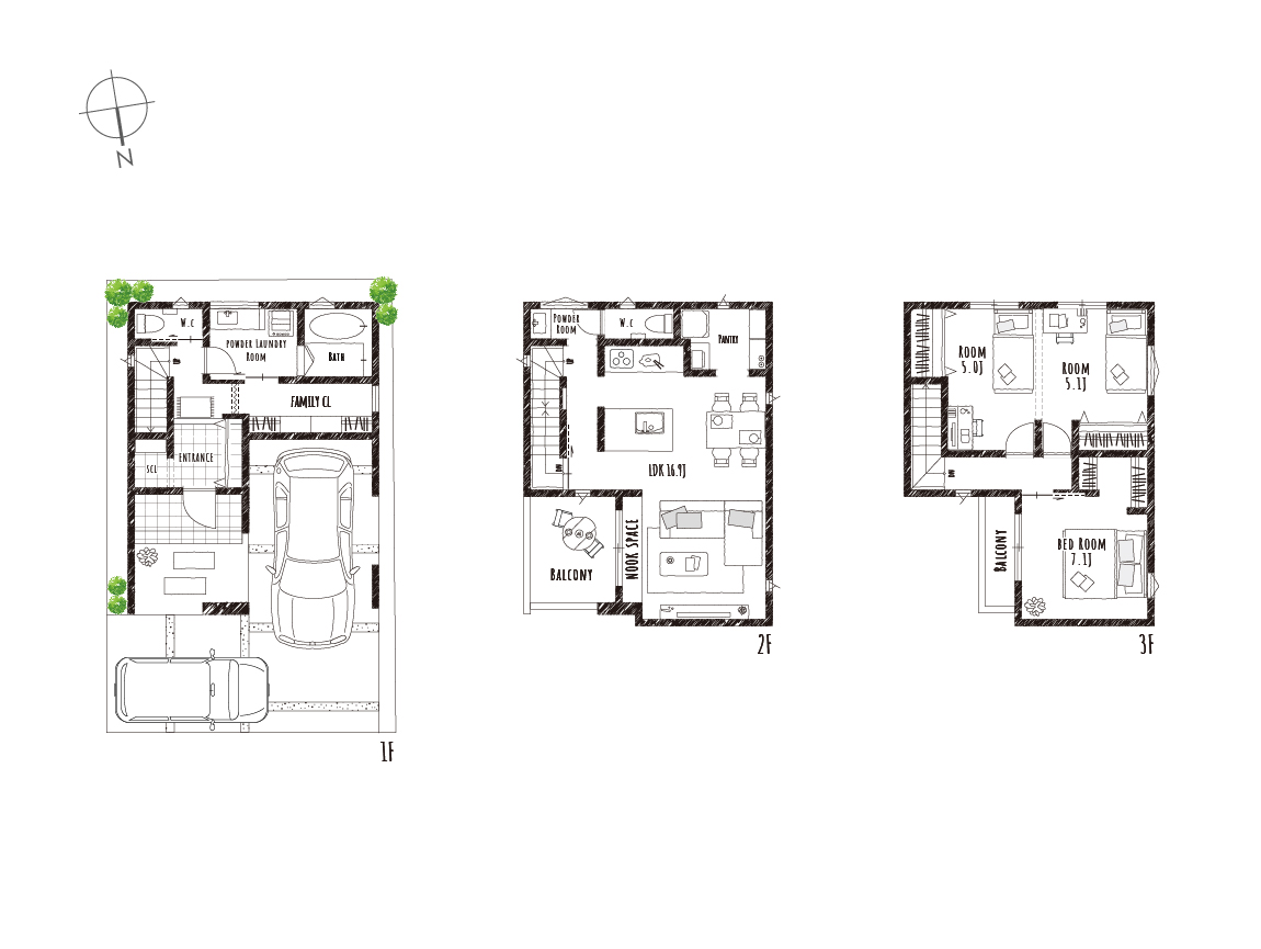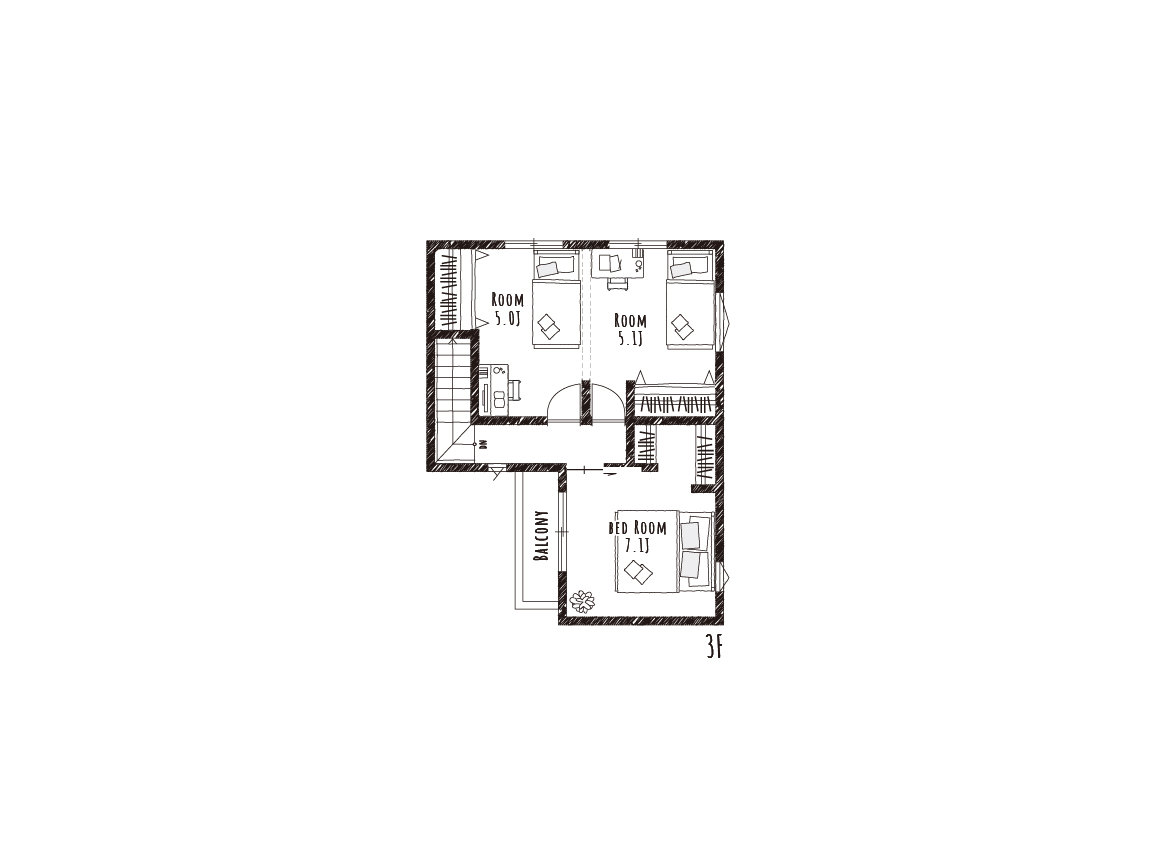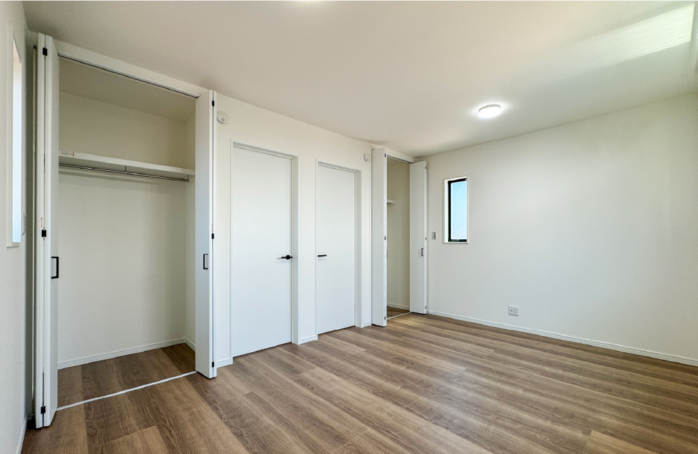3階には、将来的に仕切ることができるお部屋をご用意しました。お子さまが小さいうちは広々とした一つの空間として一緒に使い、成長に合わせて各々のお部屋が必要になったときには、壁を設置できるように下地やドア、収納、エアコン用コンセントなどをご用意しています。