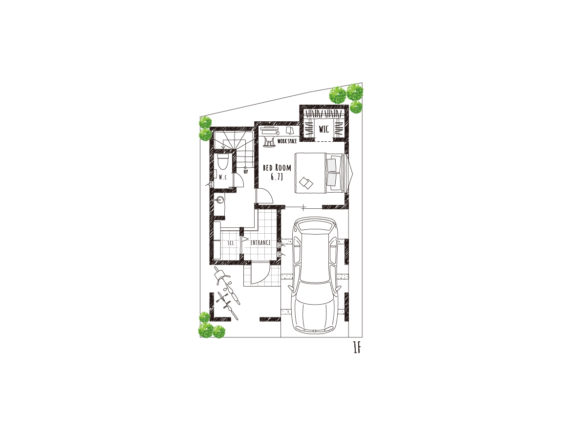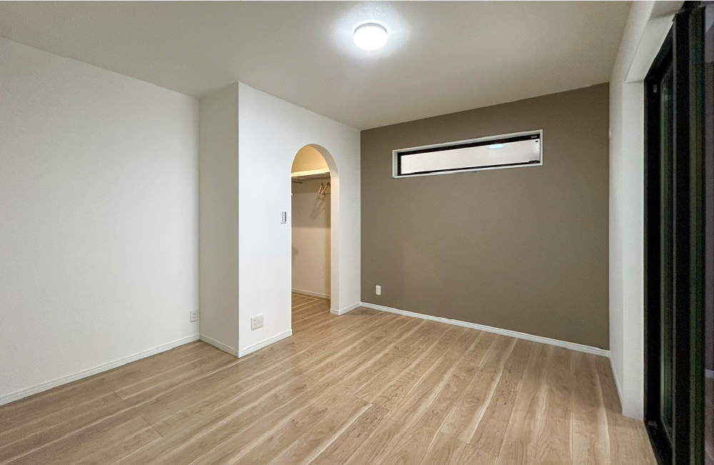 1F主寝室に設けたウォークインクローゼットには衣類やバッグ、アクセサリーなど小物類を整理整頓して収納できるので、必要なアイテムをサッと取り出すことができます。また十分な広さを確保しているので、季節ごとのアイテムやスーツケースなど大型のものの収納にも困りません。ウォークインクローゼットがあるおかげで、室内は片付き、プライベートタイムをゆったりと過ごせます。