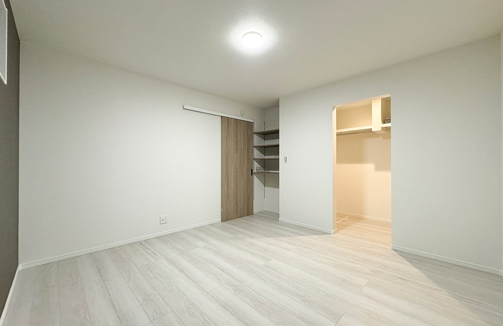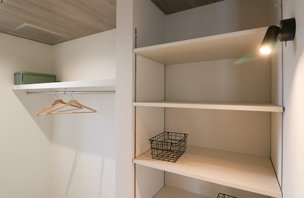 主寝室には、約2.3帖のウォークインクローゼットや収納棚を設けました。ウォークインクローゼットは衣類やアクセサリーなど小物類だけではなく、スーツケースやゴルフバッグなど大きなものも整理整頓して収納できます。収納力をしっかりと確保した主寝室だから、ものが溢れずスッキリとした状態を保てるので、ゆったりとした空間でリラックスした時間を過ごせて、読書など趣味の時間を心ゆくまで楽しんでいただけます。