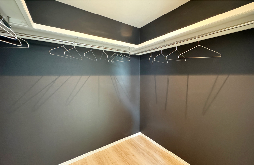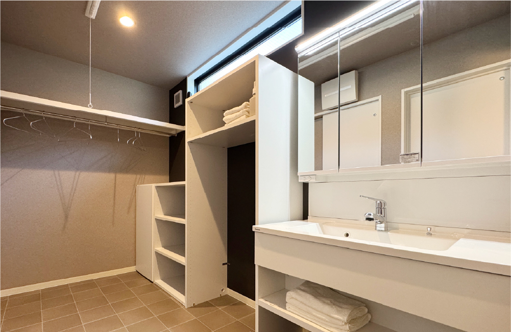 中に入って洋服を選べる十分な広さを確保したウォークインクローゼットを完備しました。季節物の衣類や小物を効率的に収納でき、日々のコーディネートも快適です。スーツケースなどの大型収納物も無理なく整理できる機能的な設計となっています。