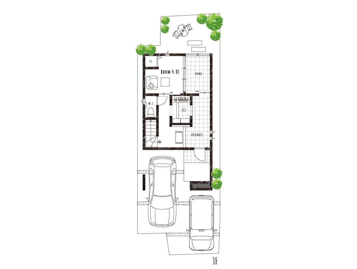 2台分の並列駐車スペースを確保し、セカンドカーや来客用として柔軟に活用できます。出し入れがスムーズな並列設計で、ご夫婦それぞれの快適なカーライフを実現します。