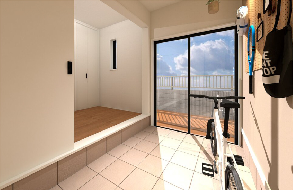 土間スペースは、趣味を存分に楽しめる多目的空間です。自転車のメンテナンスや家具のDIY作業も、天候や床の汚れを気にせず楽しめます。ガーデニング用品やアウトドアグッズなど、汚れが気になる物の収納場所としても便利に使えます。