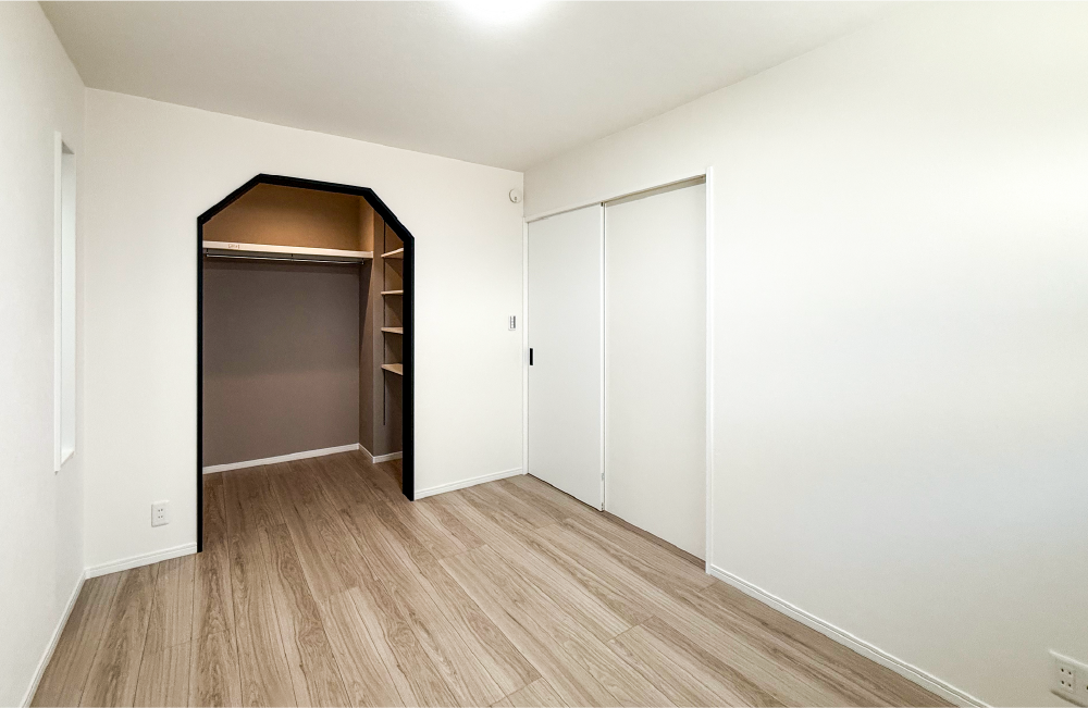 1階の主寝室には、使い勝手の良いウォークインクローゼットを設けました。洋服の他にもスーツケースや季節家電、布団など、大きくてかさばる荷物も収納できる広さがあり、整理整頓がしやすくなっています。そのため、室内をいつもスッキリと広く使うことができます。