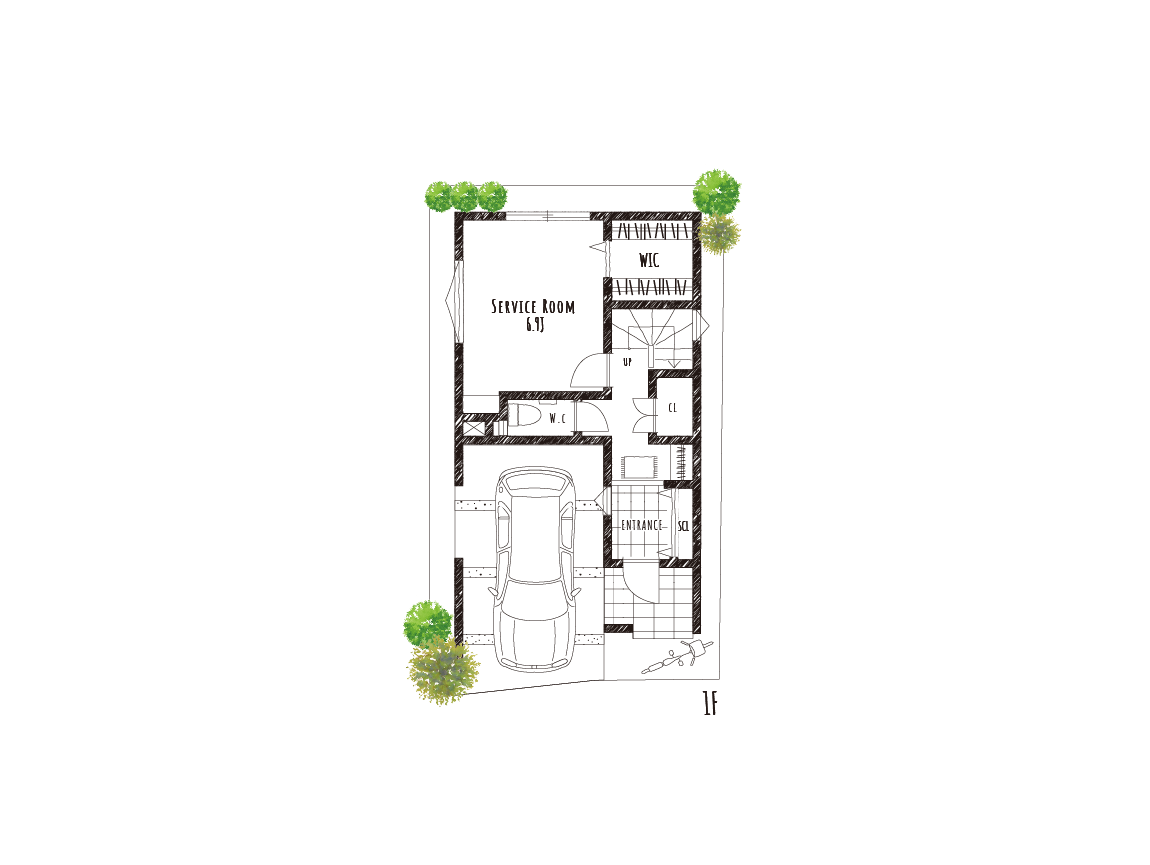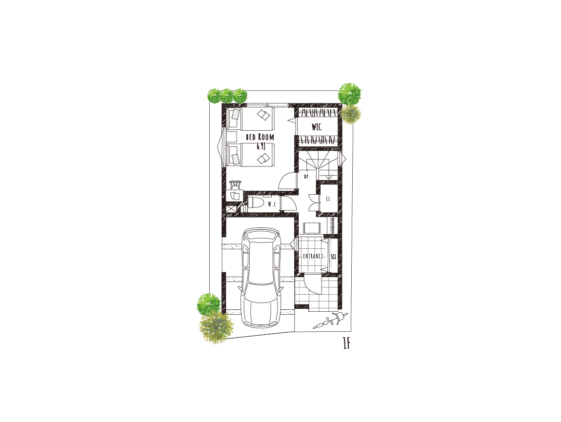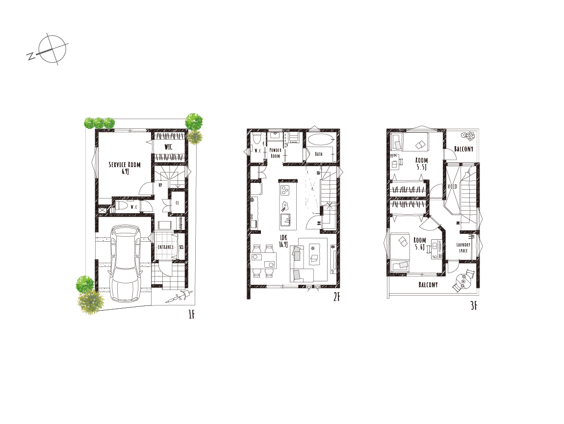 キッチンを中心に、家族のふれあいを育むあたたかなお家です。家の真ん中には、ぐるりと回遊できるペニンシュラキッチンを配置。料理をしながら、すぐそばのリビングやダイニングでくつろぐ家族の様子を見守れる、つながりを感じる空間が広がります。キッチンの前には、アイアン手すりが印象的な吹抜け階段があり、上から柔らかな光が差し込む開放的な雰囲気を演出。また、すぐ横には洗面室と脱衣室をセパレートして配置し、家族の誰かが入浴中でも洗面台が使えるよう、使い勝手に配慮しました。3階には、洗濯物をたくさん干せるワイドなバルコニーと、天候を気にせず洗濯ができるランドリースペースを完備。暮らしやすさとデザイン性を兼ね備えた、心地よい住まいです。