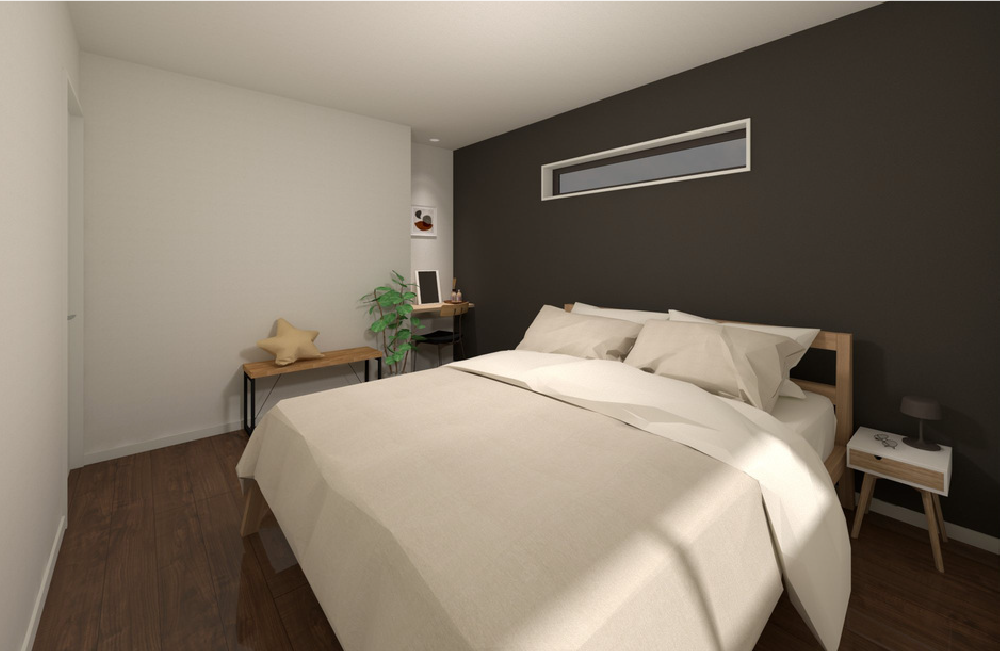 キッチンの横にワイドに広がるリビング・ダイニングは、家族みんながゆったりくつろげる心地よい空間。窓から差し込むたっぷりの自然光が、お部屋全体を明るく包み込みます。天井のスリットボックスにおさめたダウンライトは、スッキリとした美しさを演出し、さらに開放感を高めます。