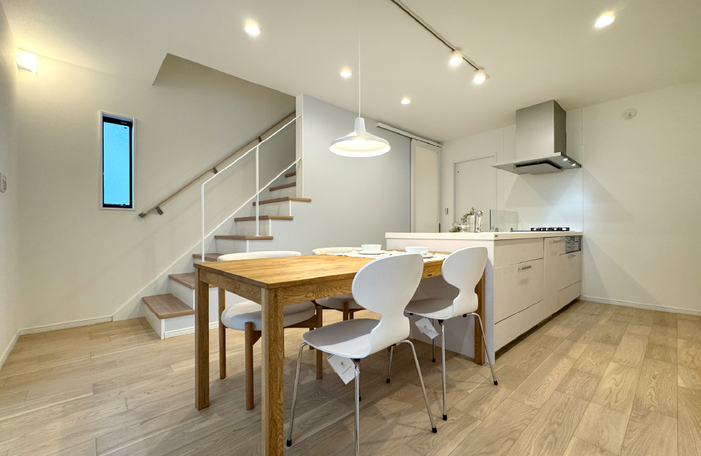 キッチン、洗面・脱衣室、浴室といった水廻りを2階に集約することで、家事の動線がスムーズになり、日々の作業がより効率的に行えます。また、キッチンのすぐ隣にダイニングを配置しているので、料理の配膳や後片付けも楽になり、暮らしやすさがさらにアップします。