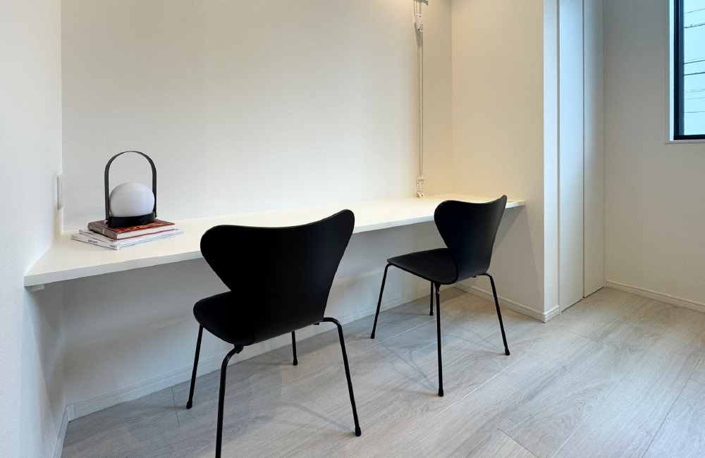LDKのどこにいても目が届くカウンターは、お子さまのスタディコーナーや家事スペース、リモートワークにと幅広く活用できます。キッチンでお料理しながらでも見守れるので、お子さまも安心して勉強に集中できます。家族の気配を感じながら、それぞれの時間を過ごせます。