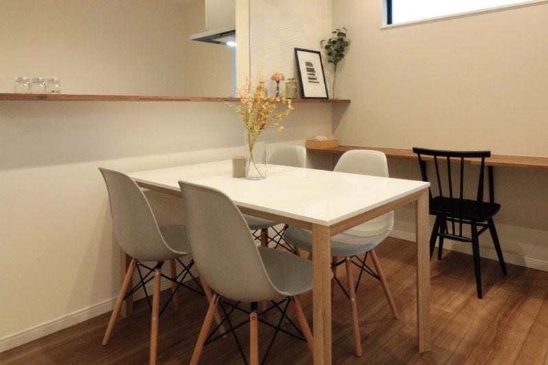 ダイニング横のカウンターはお子様の勉強スペースや家族のPCスペースとして。