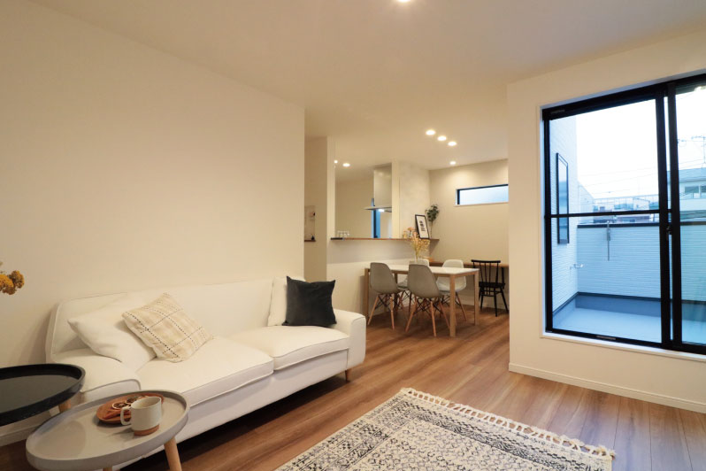 シンプルでありながら、質感や空間にこだわった、そんなお家が完成しました。 外観も、内装も、木目と黒い窓枠がアクセントになるよう、余計な色を取り除いたホワイトをベースカラーに。 お気に入りの家具やインテリアを引き立てる、シンプルでいて自分らしさが映える、愛着の湧くお家になりました。 ホテルのように、ラグジュアリーな非日常を感じられる、リラックスした空間に是非お越しください。