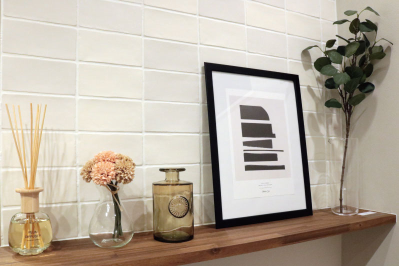 ホワイトのタイルが、お気に入りインテリアを一層たのしませてくれます。