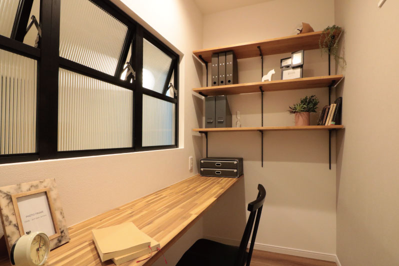 室内窓を介してつながる書斎室は半個室なっており仕事に趣味に集中できる空間です。