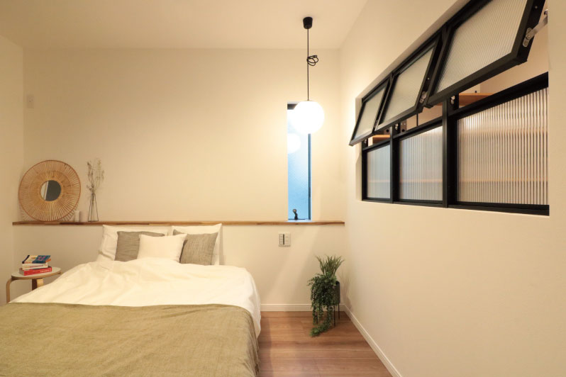 造り付けのベットボードに、お気に入りのアートや植栽を飾り、ホテルのようなリラックスできるワンランク上の寝室になりました。