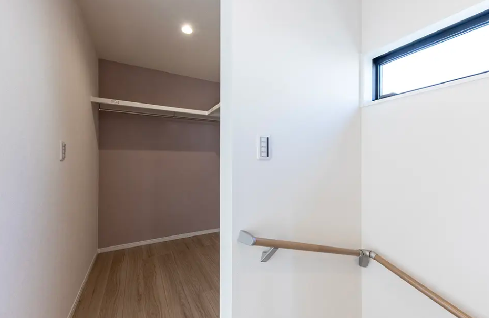 お子さまたちの洗濯物は、乾いたらそのままファミリークローゼットへ収納。共用スペースにあるため、各部屋まで服を運ぶ手間が省けて、家事の時短につながります。よく使うものは各部屋に、使用頻度の低いものはファミリークローゼットにと、用途に応じて使い分けられるのも便利なポイントです。