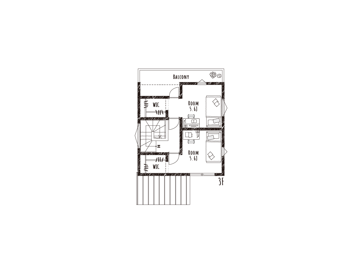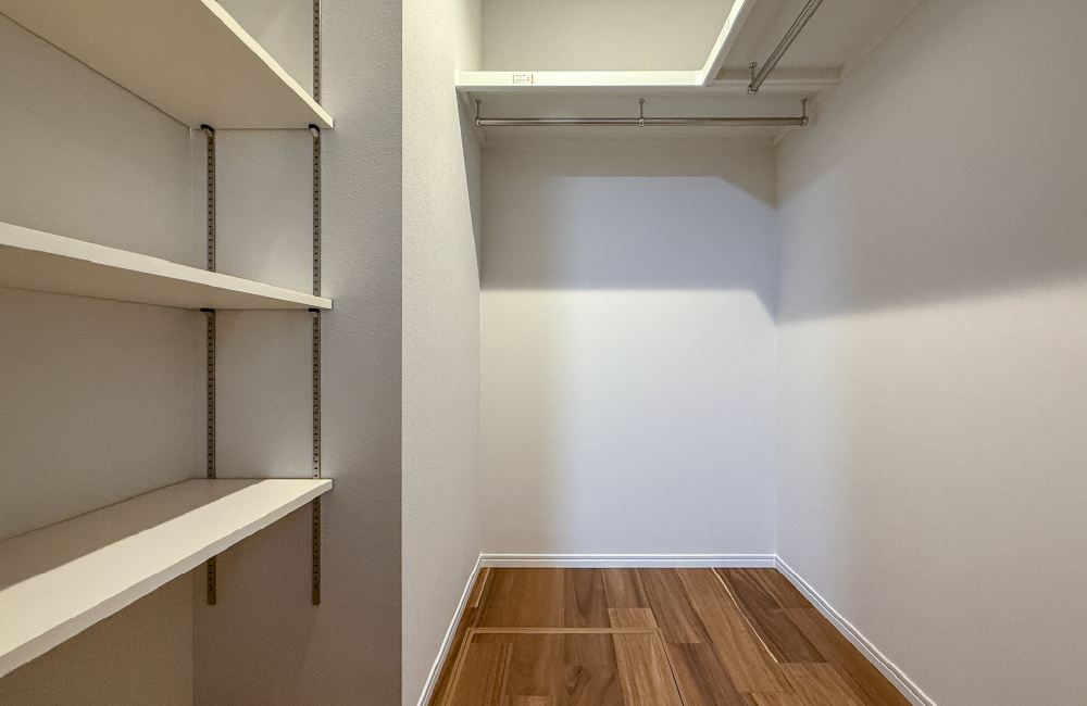 1階のサービスルームと3階の洋室2部屋には、それぞれウォークインクローゼットを設けました。家族それぞれの荷物をしっかりしまえるので、リビングや寝室は整った空間に。季節ごとの洋服やバッグはもちろん、スーツケースなどの大きなものも収納でき、広々とした空間で快適に過ごせます。