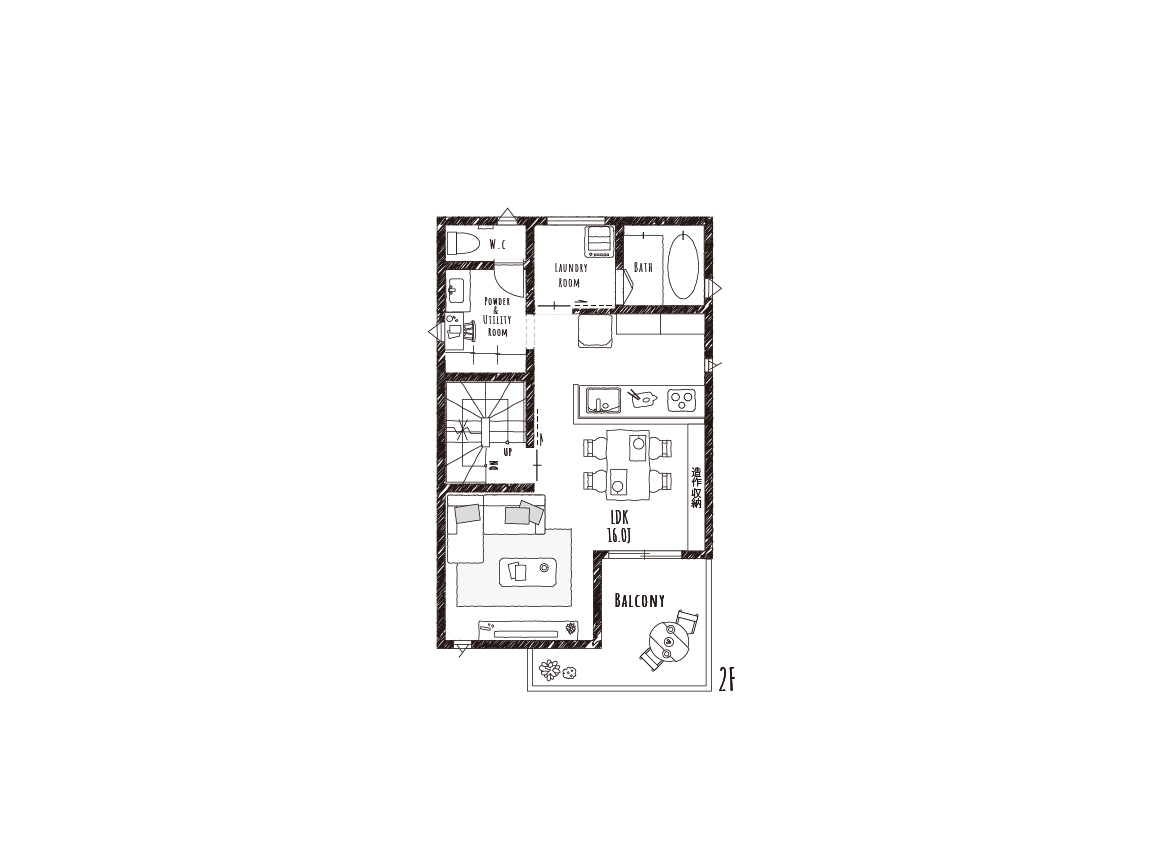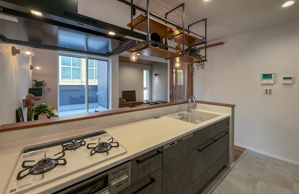 リビングやダイニングで過ごすご家族と会話を楽しみながら、お料理ができる対面キッチン。すぐ後ろにはランドリールームがあるので、お料理の合間に洗濯を回すこともできます。バルコニーも同じフロアにあるので、洗い終わった洗濯物を外へ干しにでるのもスグで家事の流れがスムーズです。