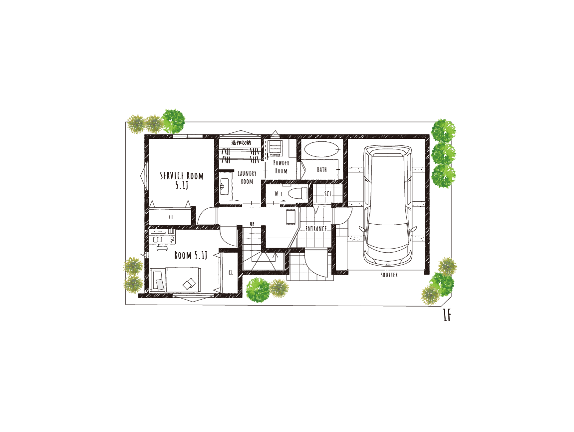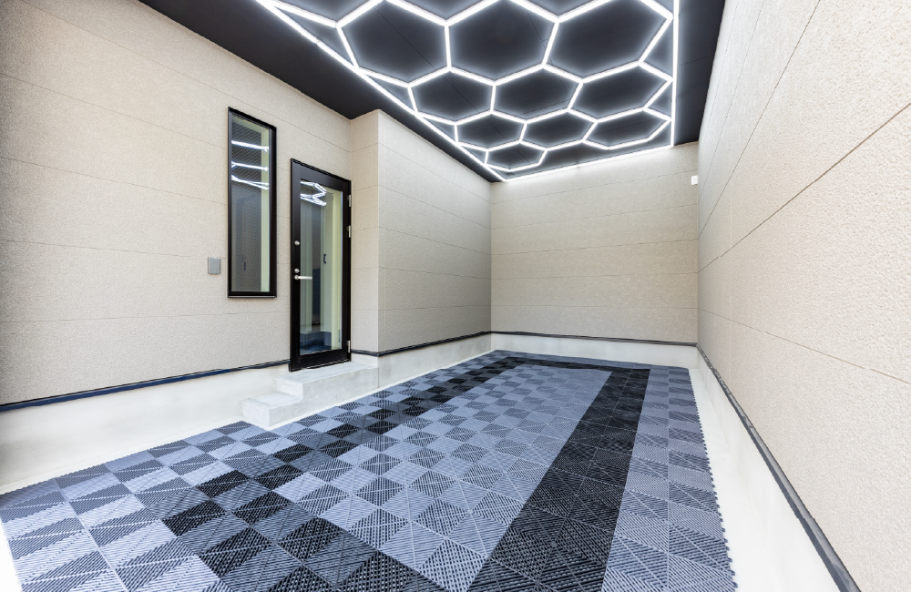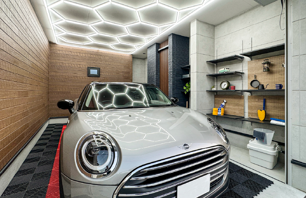 雨や風から愛車をしっかり守る、電動シャッター付きのガレージです。広さにゆとりがあるので、休日には愛車のメンテナンスやDIYなど趣味を思う存分楽しめます。玄関へ直結しているので、雨の日でも濡れずにスムーズに移動できます。暮らしに遊び心をプラスしてくれる、特別な空間です。
