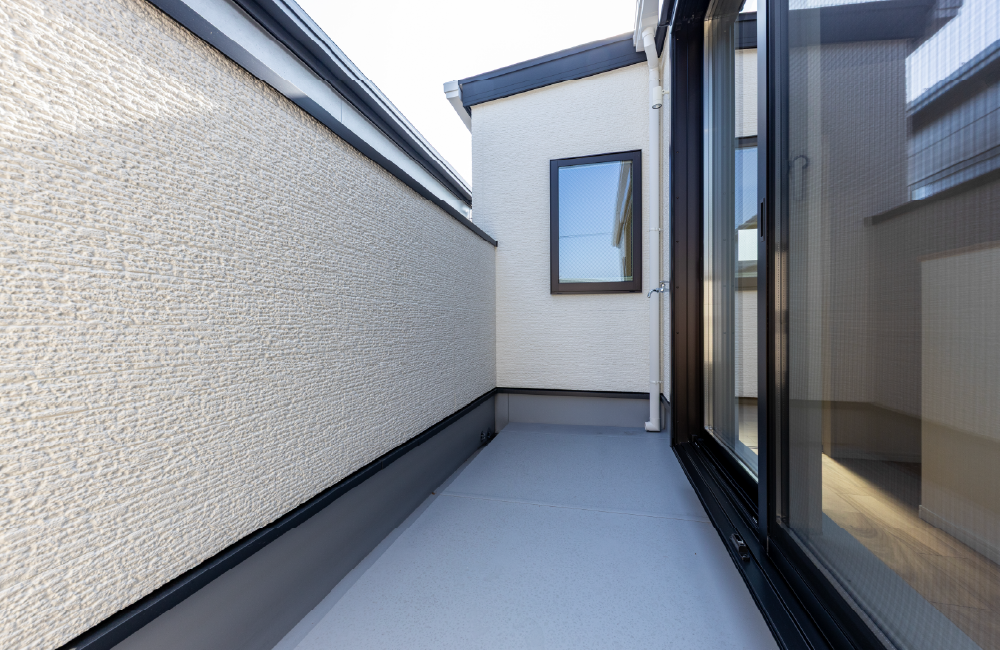 3階の廊下から出入りできるバルコニーは、吹抜けを通して2階のバルコニーともつながる開放感のある空間です。やわらかな光と風が家の中をめぐり、スキップフロアやLDKまで心地よさを届けます。家族でのんびり過ごしたり、空を見上げてくつろいだりできる、穏やかな時間が流れるスペースです。