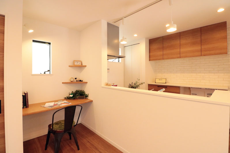 キッチン横に配置することで、料理や洗い物などの家事をしながらほどよく子供の様子が見え、「お母さん、ちょっとこれ教えて」にも答えることができます。