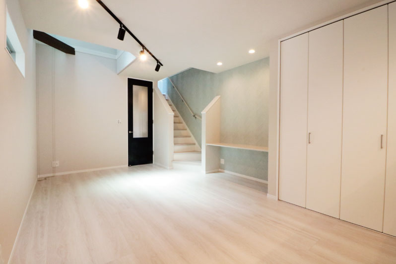 リビング横にあるスタディスペースは、2人並んでも余裕のある広さ。ソファでのんびりしながら、子供の勉強している様子を見ることができます。スペース横の収納に、ランドセルや学校のプリントもスッキリしまっちゃいましょう。