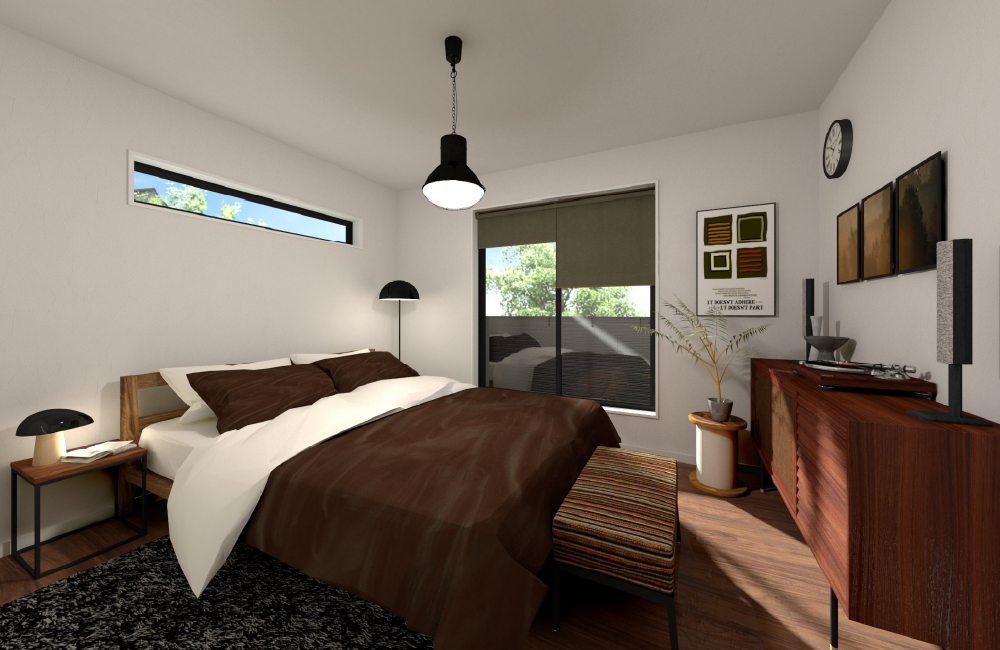 南側にワイドなバルコニーが広がる主寝室です。朝はやさしい光が室内に入り、窓を開ければ爽やかな風が心地よく通り抜けます。大きめのクローゼットを備えているため、ご夫婦それぞれの洋服をしっかり収納できます。衣類やバッグもまとめてしまいやすく、室内をすっきり整えやすい空間です。