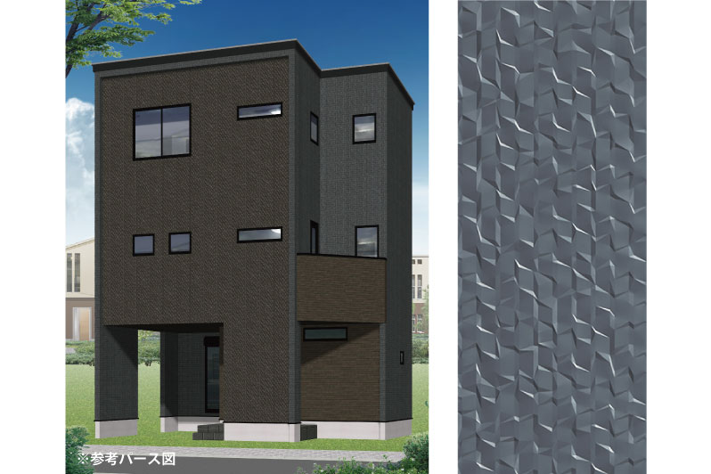 窓の配置から、「あそこが水廻りで、こっちがリビングだな」と想像しにくい、家っぽさを感じさせないデザインを目指しました。家族を守る家だからこそ防犯面にも配慮しました。ブラックのガルバリウムを使用した、素材感を感じるカッコイイ外観です。