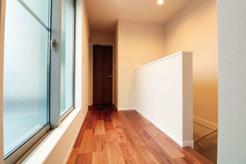 3階には廊下を上がればすぐに出れる、バルコニーを設けました。洗濯動線を考え、個人のプライベートな空間を通ることなく、布団や洗濯物の出し入れもラクラク。5帖ほどの大きなバルコニーなので、天気のいい日にまとめて一気に家族分の布団を干すこともできます。