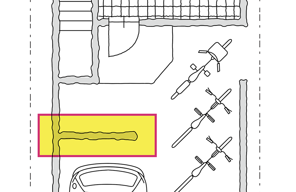 道路側から玄関が見えないようにガレージの内部に壁を設置しました。朝、慌ててお家を出た時や、玄関前でお隣さんと立ち話なんて時も、目の前の道路を歩く人にお家の中が丸見えなんてこともありません。プライバシーを確保しつつ、木目の壁がワンポイントとして、お家の外観をおしゃれに見せてくれます。