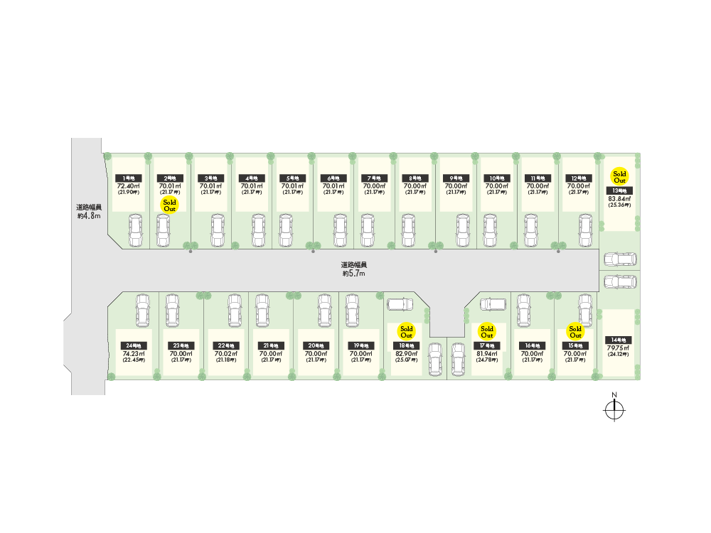 敷地面積 70.00㎡(21.17坪)・70.01㎡(21.17坪)