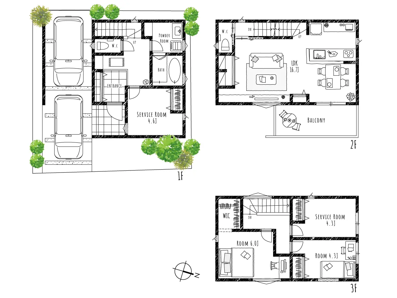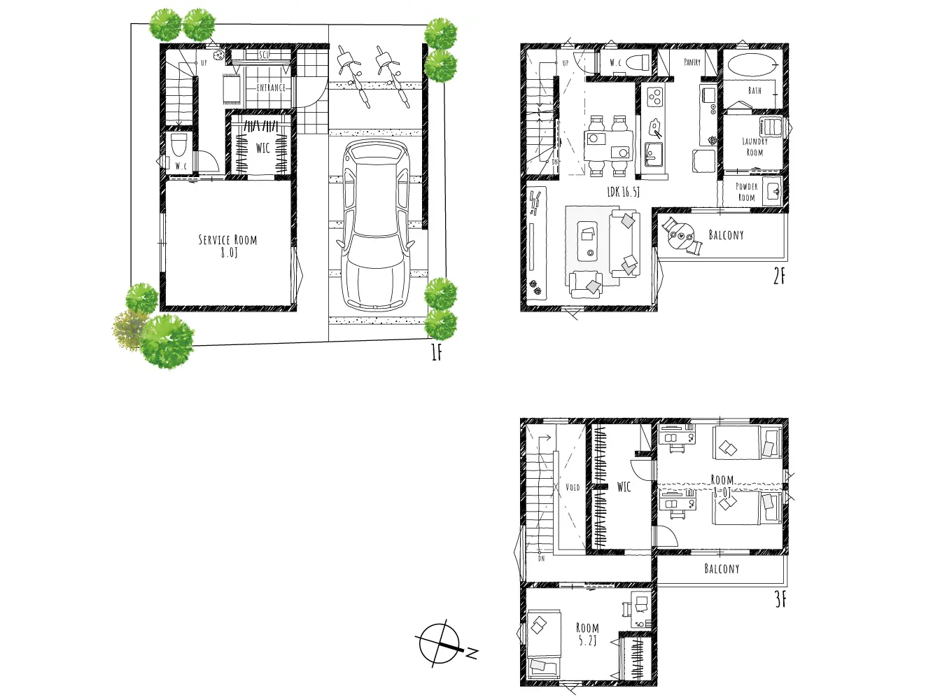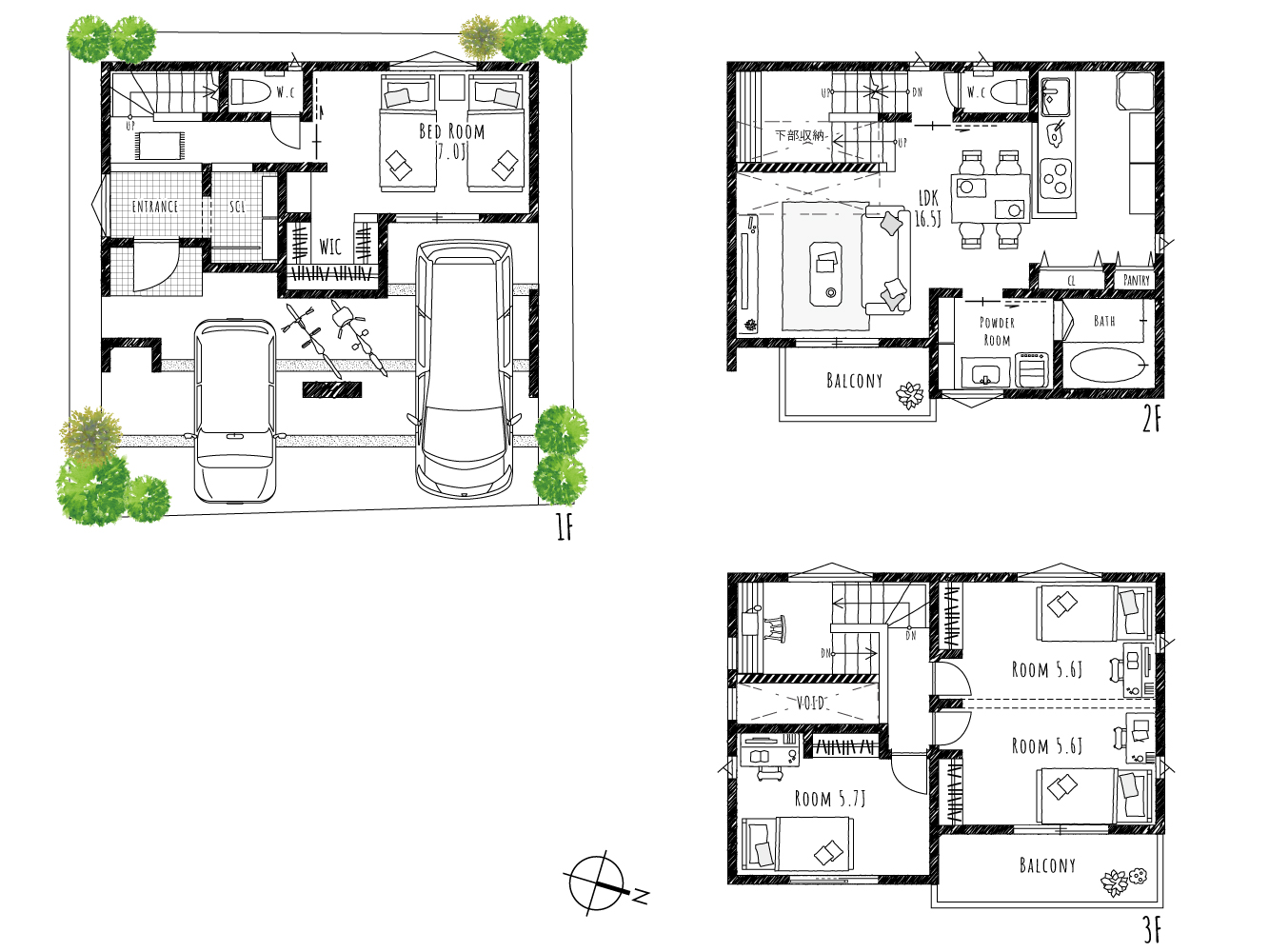 駐車2台可!2階に水廻り集結で家事ラク◎