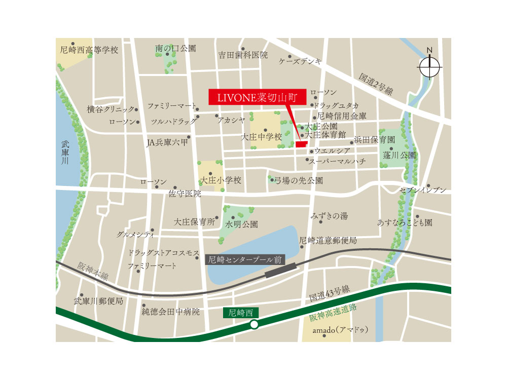 | 主要交通 | 阪神本線「尼崎センタープール前」駅徒歩8~9分(630~710m) |