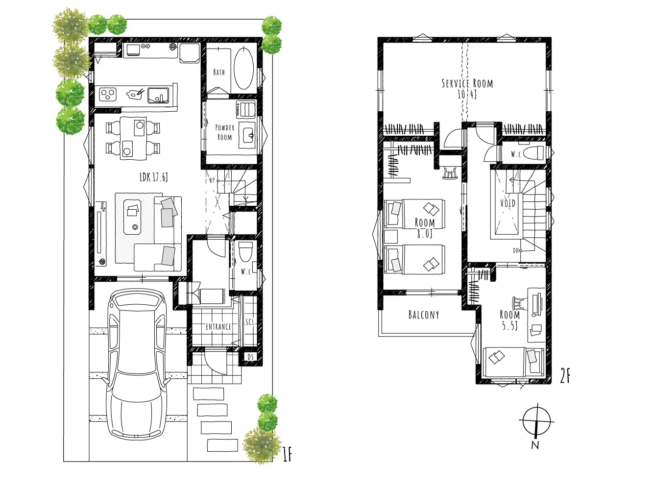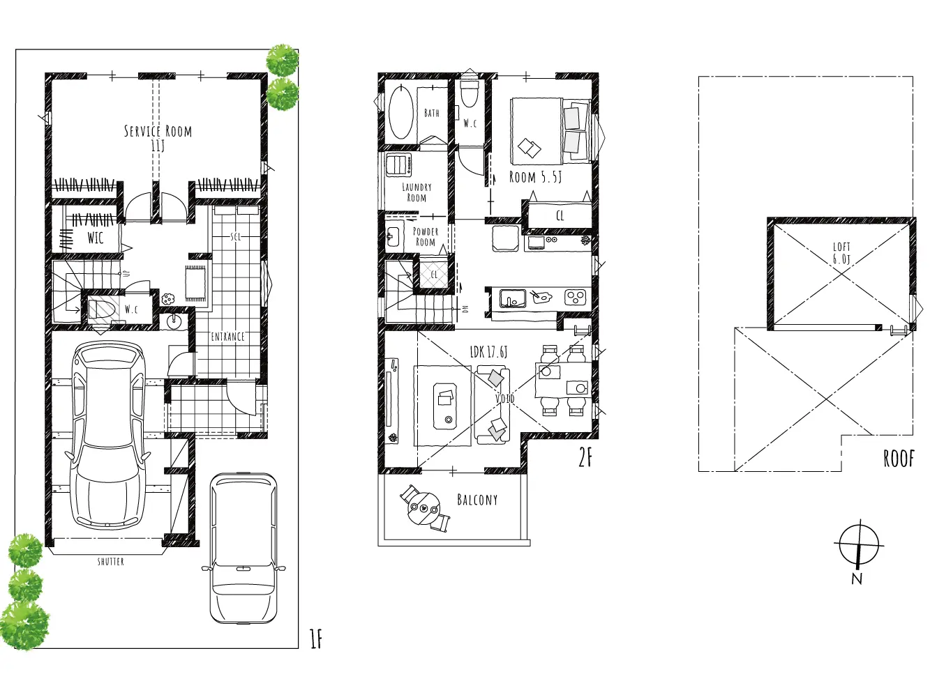・広い土地や間口を活かした吹抜けや駐車2台など様々なプランが可能♪